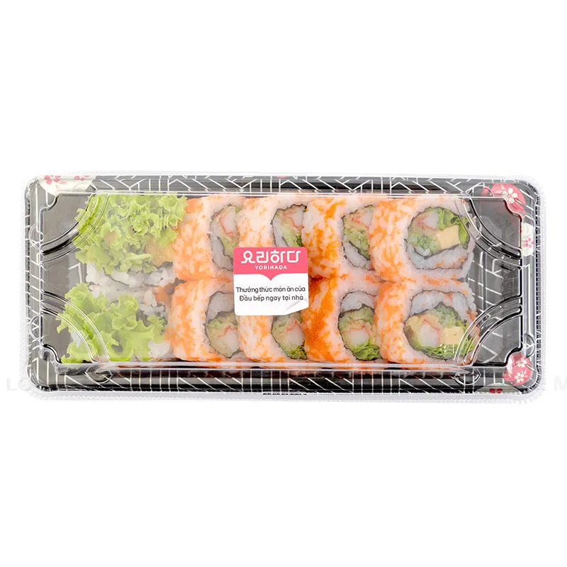 - Thành phần: Cơm sushi, lá rong biển, dưa leo, xà lách lolo, trứng cuộn Nhật Bản, trứng cá masago, thanh cua, bột Tempura.