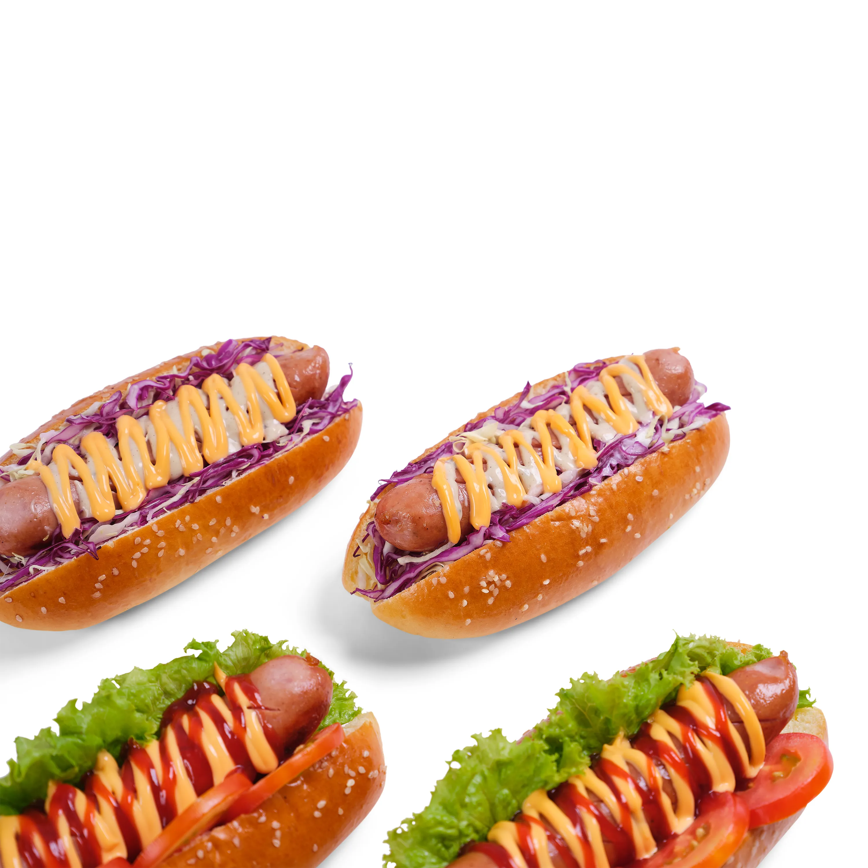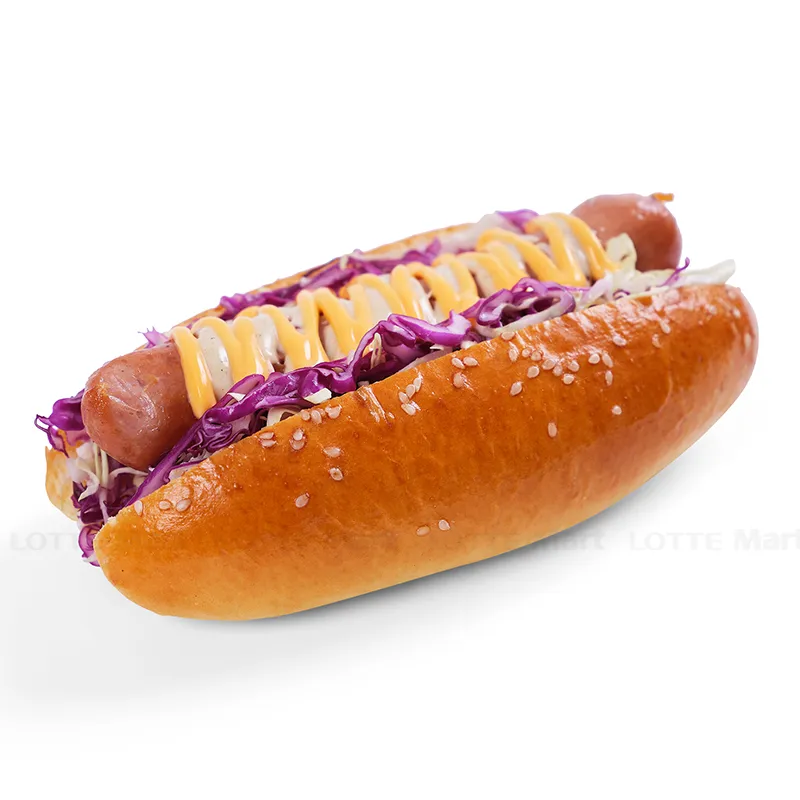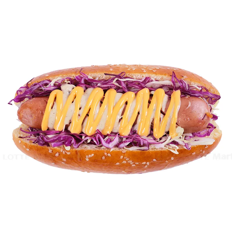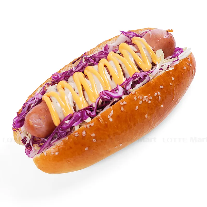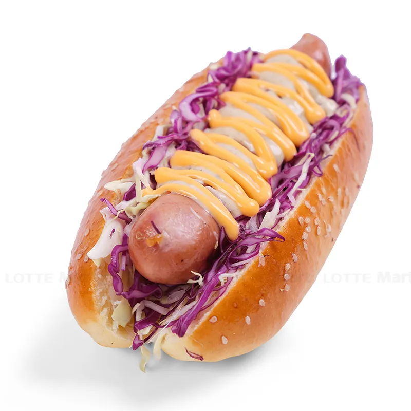 - Thành phần: Bột bánh mì, bắp cải trắng, bắp cải tím, xúc xích xông khói, mè trắng, xốt phô mai, xốt tiêu.