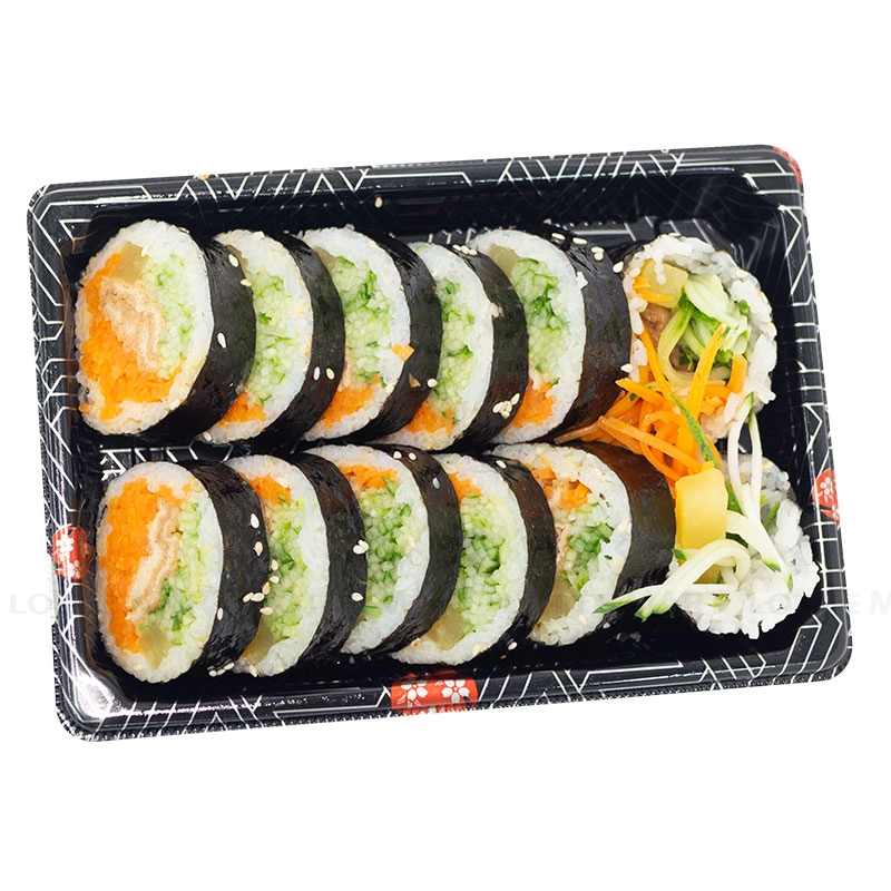 Thành phần: Cơm, tàu hủ Nhật, dầu mè, cà rốt, củ cải vàng, mè trắng.