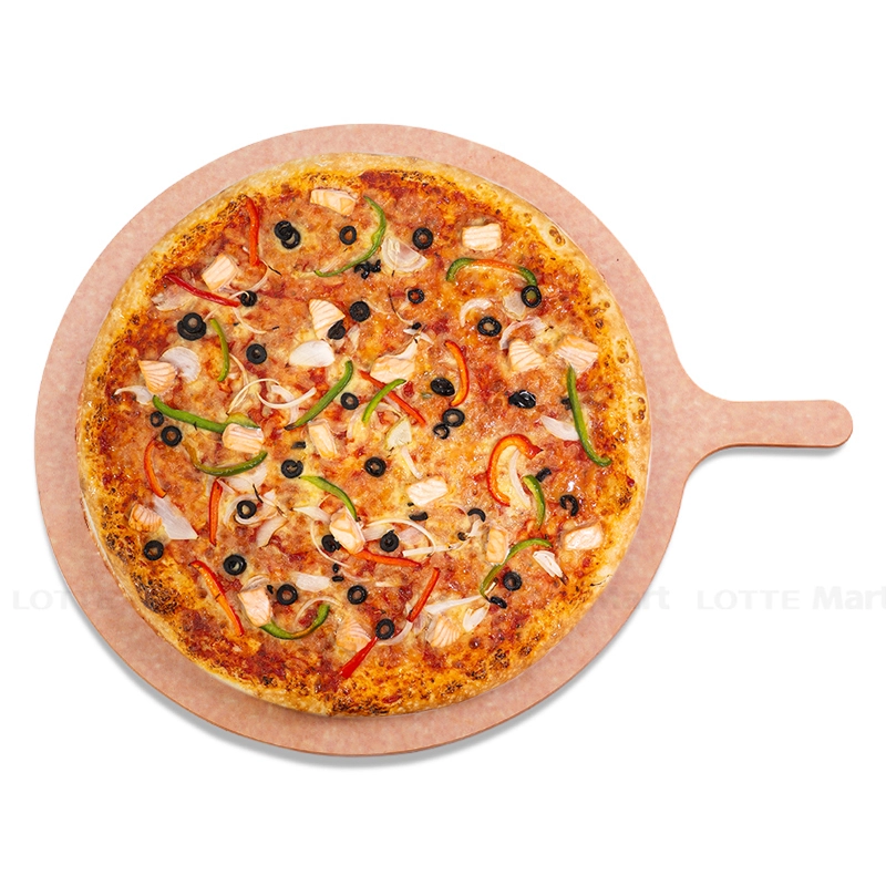 Thành phần: Bột mì, đường, dầu, men khô, muối, xốt cà chua, tiêu xay, lá origano, phô mai, hành tây, ớt chuông, cá hồi phile, olives cắt lát.