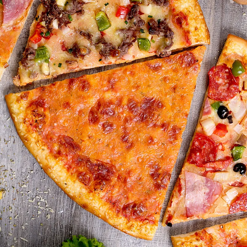 - Pizza Phô Mai Cheese & Dough 1 Miếng với mặt trên gồm 3 loại phô mai mozzarella, parmesan và cheddar đặc biệt tạo nên một chiếc bánh vị béo hài hòa, vô cùng hấp dẫn, đế bánh mỏng, giòn rụm cùng lớp phô mai béo tan trong miệng sẽ là một bữa ăn đầy tiện lợi và thơm ngon, chiều lòng nhiều thực khách.