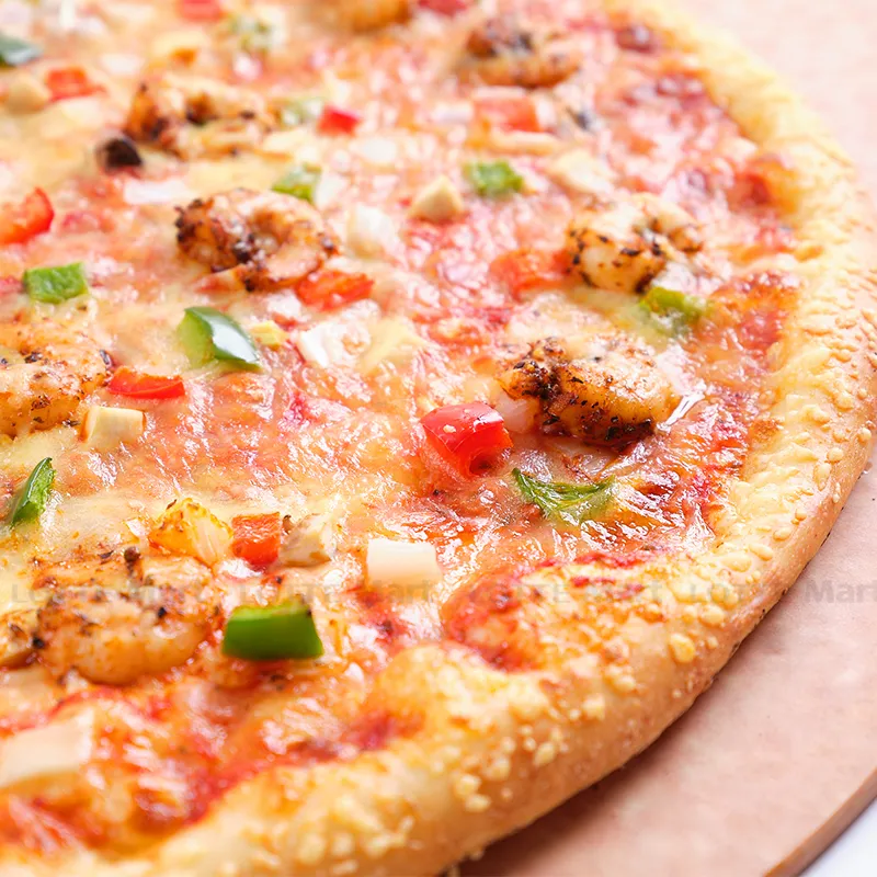 - Pizza Tôm Cheese & Dough 45cm sử dụng tôm tươi kết hợp với nấm đùi gà cùng phô mai tạo nên hương vị hoàn hảo, đế bánh mỏng, giòn rụm cùng lớp phô mai béo tan trong miệng sẽ là một bữa ăn đầy tiện lợi và thơm ngon, chiều lòng nhiều thực khách.