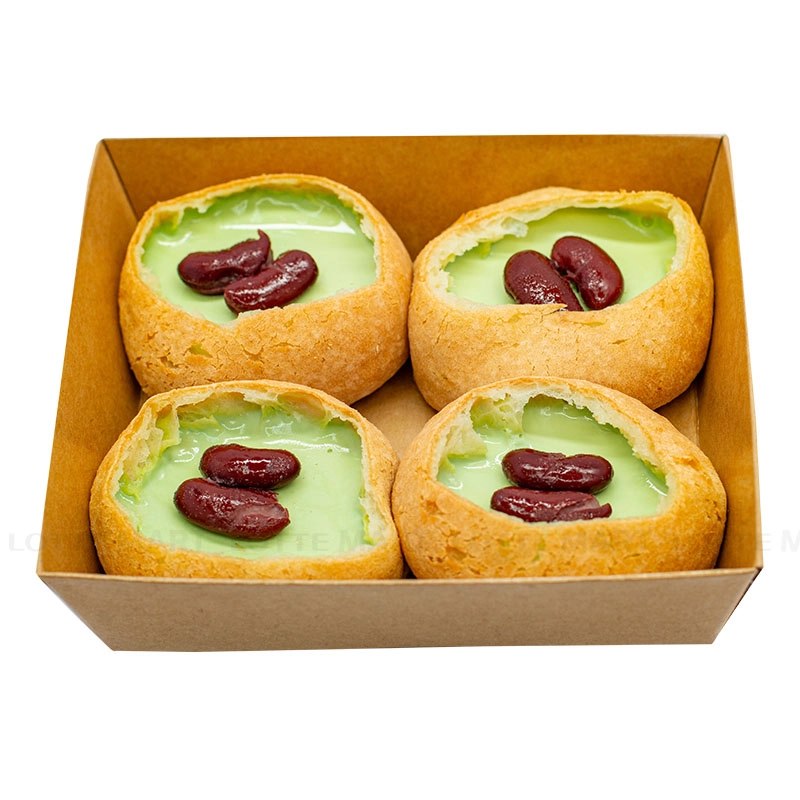 Thành phần: BTS vỏ bánh su dai, trứng gà, dầu ăn, sữa tươi nguyên kem, whipping cream, đường, grlatine, bột matcha, đậu đỏ