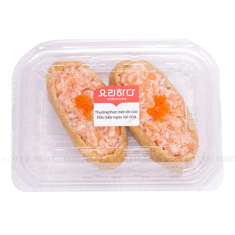 Thành phần: Cơm Nhật, tàu hủ Nhật kho, cá hồi sống, xốt kem hành.