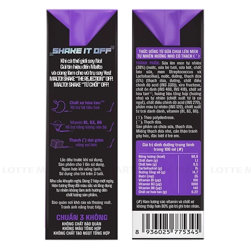 - Sữa Chua Uống Lof Malto Hương Nho Có Thạch là lựa chọn tuyệt vời cho những ai yêu thích thức uống thơm ngon, mát lạnh và mới lạ. Với vị nho chua ngọt dễ chịu, kết hợp cùng sữa chua lên men nhẹ nhàng và thạch giòn dai bên trong, sản phẩm không chỉ giúp giải khát mà còn kích thích vị giác và hỗ trợ tiêu hóa.