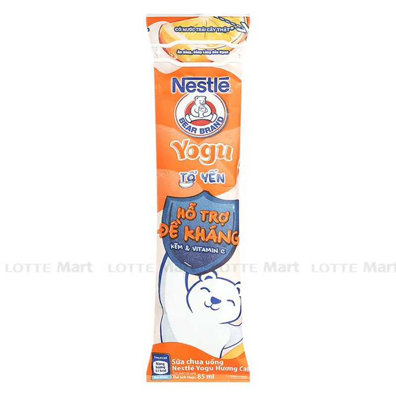 Sữa Chua Uống Nestle Yogu Vị Cam 85ML tiện lợi, hấp dẫn và nhiều dinh dưỡng sẽ cùng mẹ mang đến cho trẻ 1 sản phẩm chất lượng cao với hương vị thơm ngon. Vị cam ngọt nhẹ và chua thanh cùng với tổ yến xay nhuyễn thích hợp với khẩu vị của trẻ để trẻ luôn háo hức uống mỗi ngày. Công dụng: Có chứa tổ yến và 5 loại vitamin cùng khoáng chất thiết yếu bao gồm Canxi, Kẽm, Chất Xơ, Vitamin C, D. Đặc biệt, có chứa Vitamin C và Kẽm được khoa học công nhận hỗ trợ sức đề kháng, giúp trẻ khỏe mạnh để luôn sẵng sàng trước mọi thử thách. Thành phần: Sữa chua uống lên men 57% (nước, sữa bột tách kem-skimmed milk powder, sữa chua lên men từ Streptococcus thermophilus, Lactobacillus delbrueckii subsp bulgaricus-from milk, chất béo sữa-milk fat), đường, siro glucose, chất xơ thực phẩm 1.1% (inulin), acid (330, 270), chất ổn định (466, 418, 440), dầu thực vật, hương giống tự nhiên dùng cho cho thực phẩm, calci phosphate tự nhiên từ sữa(from milk), nước cốt táo , các vitamin (D3, C), chất nhũ hóa 322(i)-chiết xuất từ đậu nành (soya le Cho bé từ 1 tuổi trở lên. Hướng dẫn sử dụng: Cách sử dụng: Lắc đều hộp sữa chua trước khi uống. Ngon hơn khi uống lạnh. Nhu cầu khuyến nghị: Sử dụng 2 hộp sữa chua Tổ Yến Nestlé YOGU mỗi ngày. Không dùng cho người dị ứng với các thành phần của sản phẩm. Hướng dẫn bảo quản: Bảo quản sản phẩm nơi khô ráo, thoáng mát, tránh ánh nắng trực tiếp. Sản xuất tại: Việt Nam. Hạn sử dụng: 8 tháng kể từ ngày sản xuất.