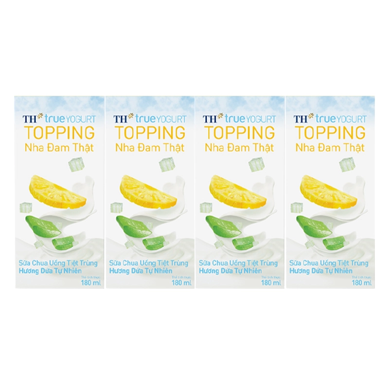 Sữa Chua Uống Tiệt Trùng TH Topping Hương Dứa Lốc 4 Hộp 180ml