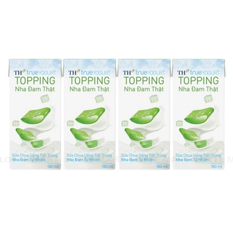 Sữa Chua Uống Tiệt Trùng TH Topping Nha Đam Lốc 4 Hộp 180ml