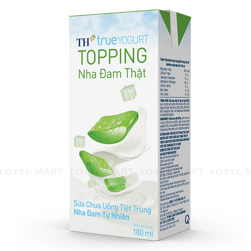 - Sữa Chua Uống Tiệt Trùng TH Topping Nha Đam được lên men tự nhiên từ sữa tươi trang trại, sạch, nguyên chất theo chuẩn của trang trại TH kết hợp cùng miếng nha đam mát lành mang đến trải nghiệm nhai thú vị, cuốn hút.