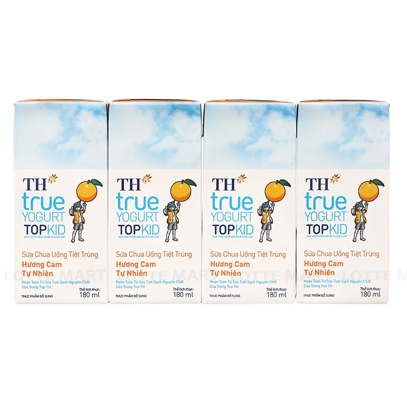 Sữa Chua Uống Tiệt Trùng TH True Yogurt Topkid Hương Cam Lốc 4 Hộp 180ml