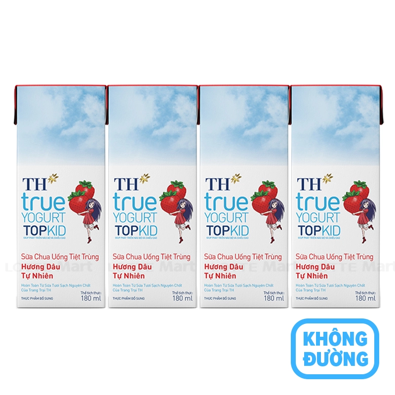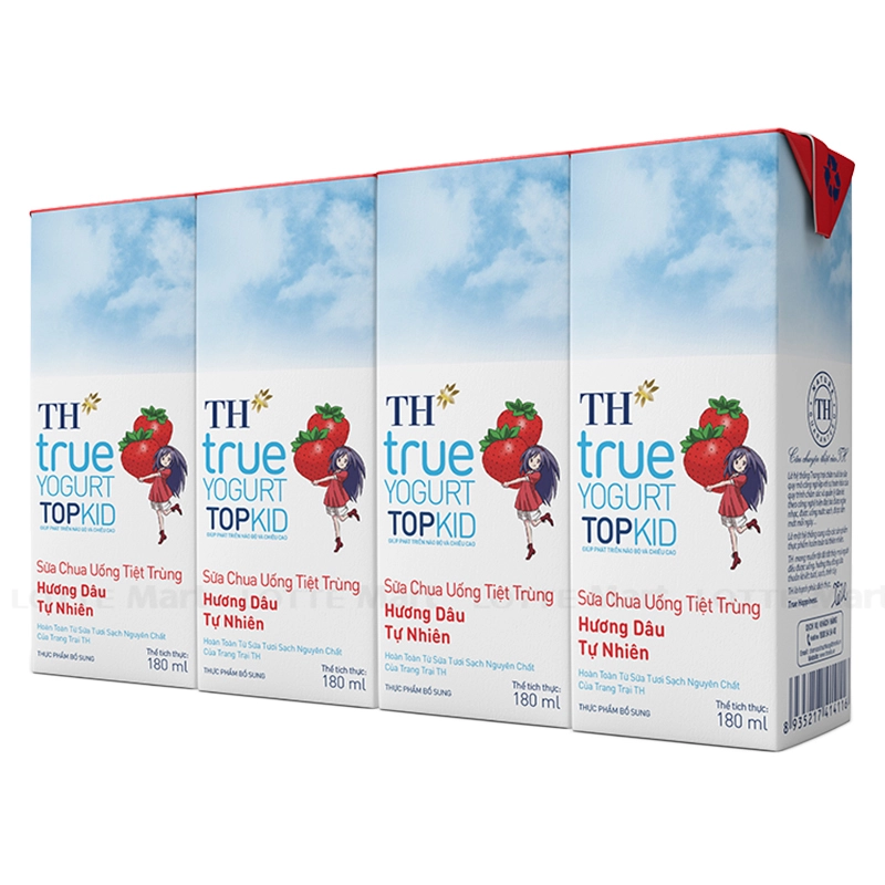 Sữa Chua Uống Tiệt Trùng TH True Yogurt Topkid Hương Dâu Lốc 4 Hộp 180ml