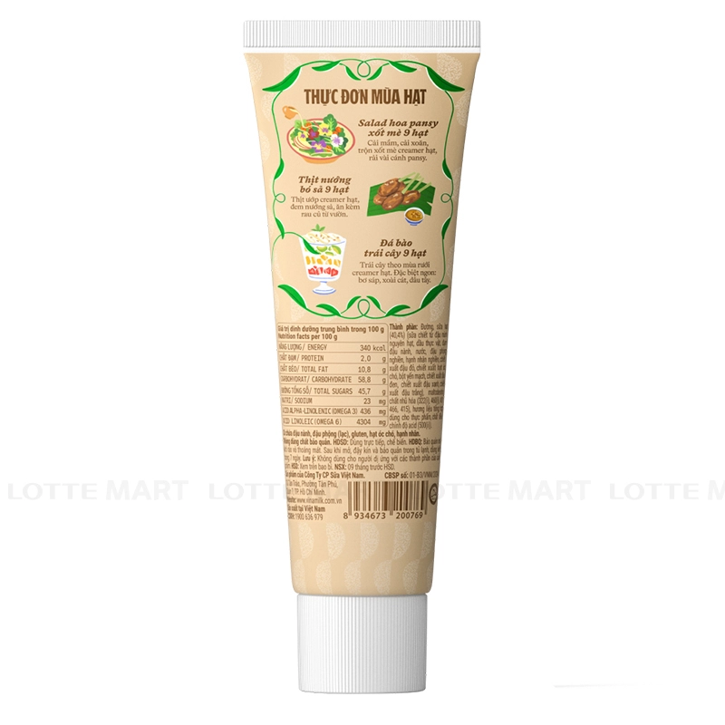 - Creamer Đặc Vinamilk 9 Loại Hạt là sản phẩm thuần chay đậm đặc, được làm từ 9 loại hạt tự nhiên giàu dưỡng chất như hạnh nhân, óc chó, yến mạch, đậu nành và các loại đậu, mang đến hương vị thơm béo, sánh mịn.