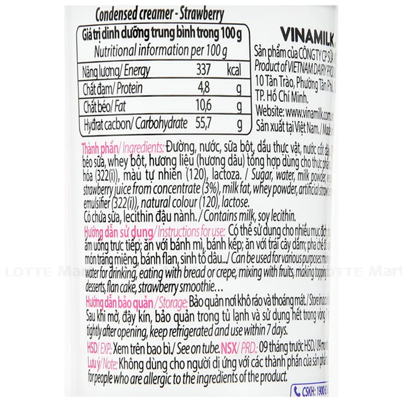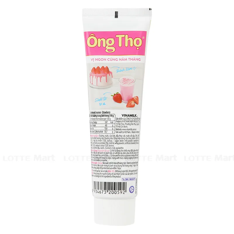 - Sữa Đặc Có Đường Ông Thọ Vị Dâu Tuýp 165G mang màu sắc hiện đại cùng hương vị thơm ngon khó cưỡng, phù hợp với làm topping giúp các món ăn và thức uống thêm đậm đà và hấp dẫn hơn.