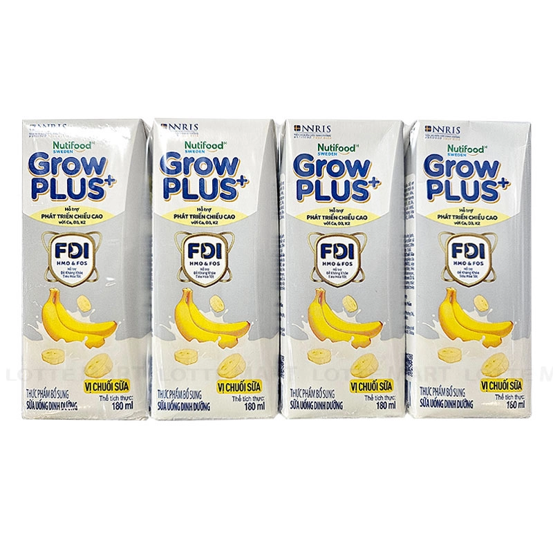 Sữa Dinh Dưỡng Pha Sẵn Nutifood GrowPLUS+ Phát Triển Chiều Cao Vị Chuối Lốc 4 Hộp 180ml