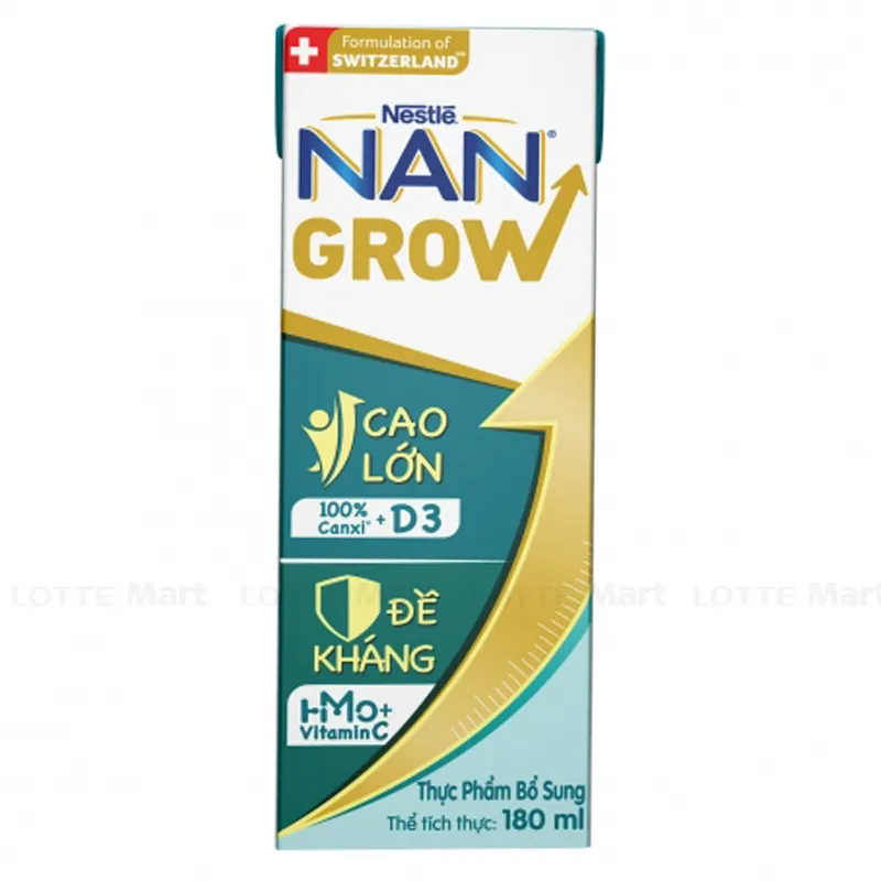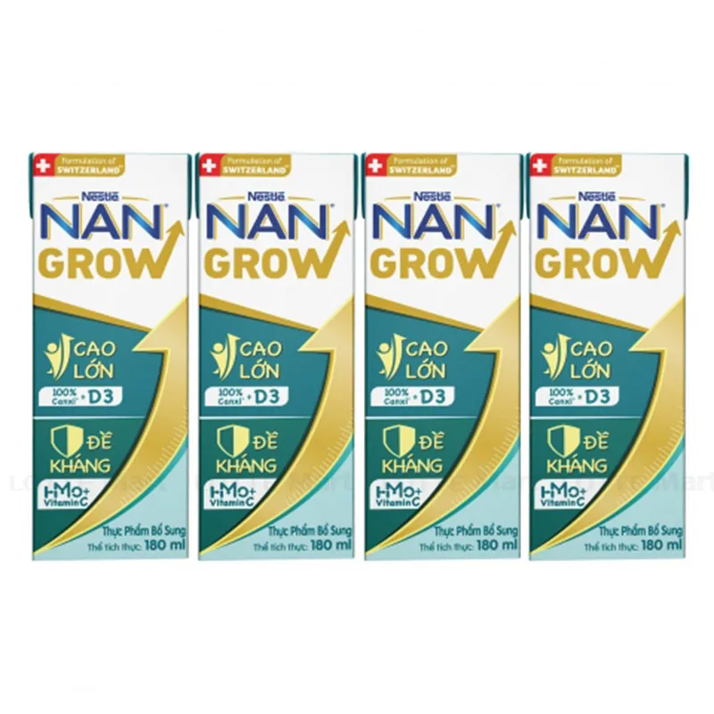 - Sữa Dinh Dưỡng Pha Sẵn NAN Grow Lốc 4 Hộp 180ml sản xuất theo công thức tiên tiến được phát triển bởi NPTC (Trung tâm Công nghệ Nestle) tại Thụy Sĩ.