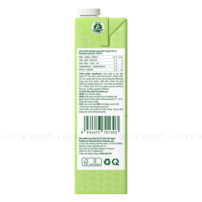 - Nước, đậu nành, Cacbonat Canxi, chất ổn định,...