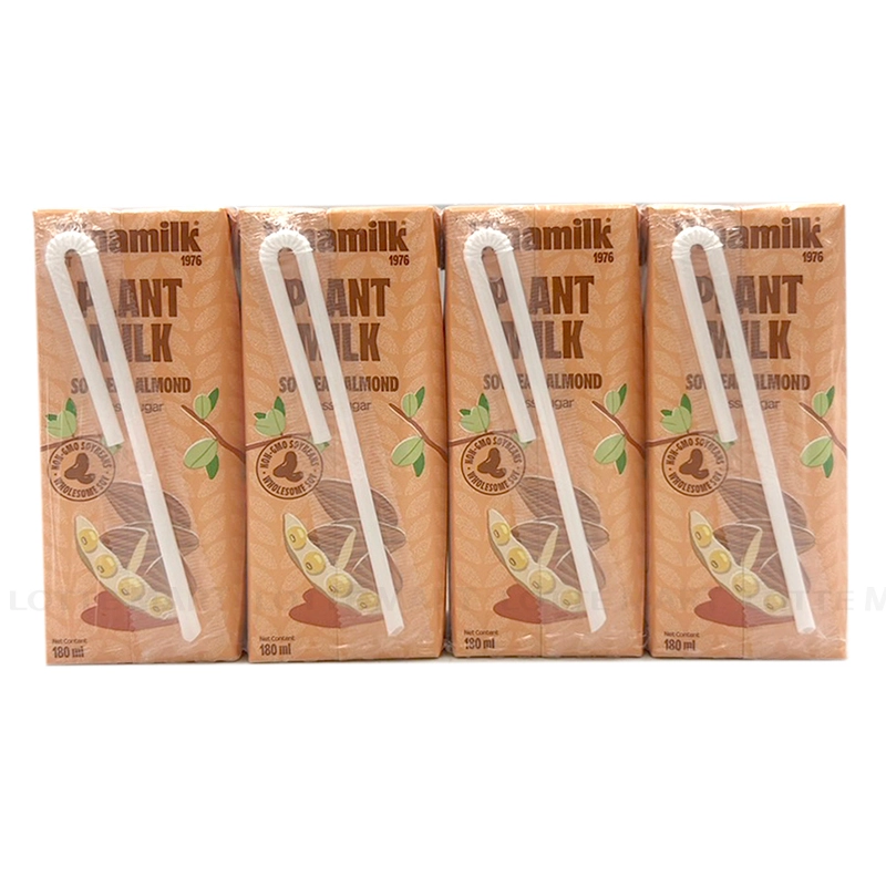 - Dịch đậu nành nguyên hạt (49.5%), nước, đường (5%), dầu thực vật, đậu phộng nghiền, hạnh nhân nghiền (5.1g/l), chất nhũ hóa (471,460 (i), 466) muối ăn, hương hạnh nhân tổng hợp dùng cho thực phẩm , vitamin (E, B3, A, D3), chất điều chỉnh độ acid (500 (ii)).
