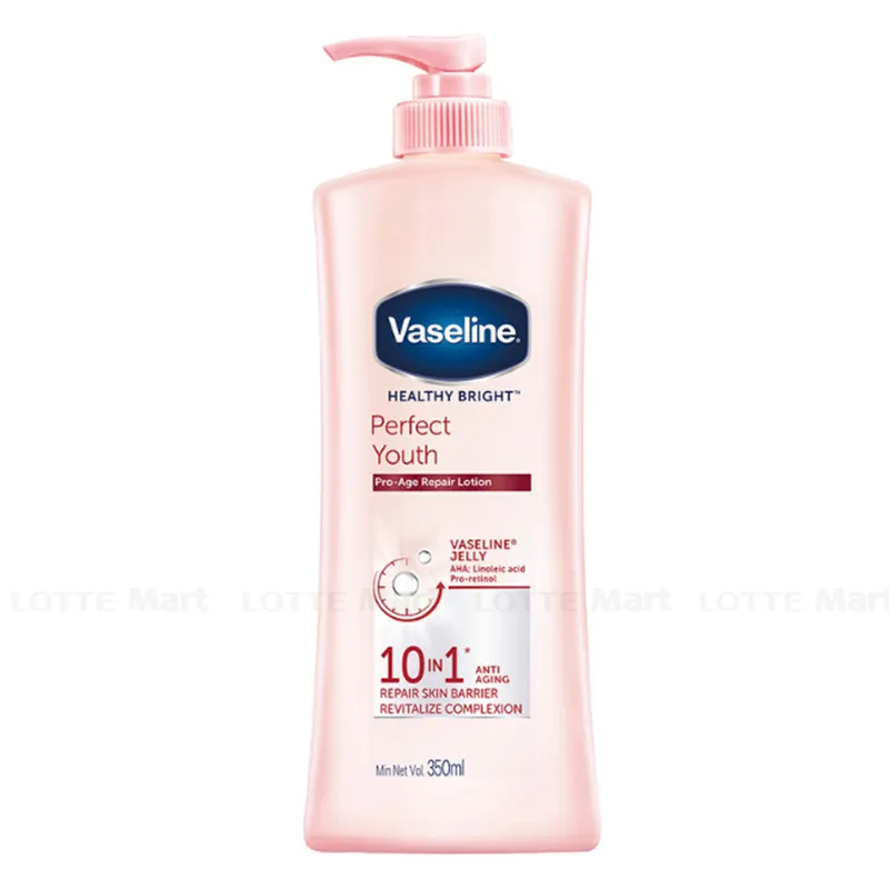Sữa Dưỡng Thể Vaseline Ngừa Lão Hoá Perfect Youth 350ml với công nghệ Omega-6 mang lại lợi ích chống lão hóa da 10 trong 1 mang đến cho bạn làn da dẻo dai, tươi trẻ. Với AHA & Pro-Retinol giúp loại bỏ tế bào chết, kích thích sản sinh collegen & giảm dần các nếp nhăn. Ứng dụng công thức đột phá với sự kết hợp các thành phần dưỡng sáng da và ngăn ngừa lão hóa da vượt trội vào sữa dưỡng thể Vaseline Perfect Youth sửa chữa hàng rào bảo vệ da và phục hồi làn da.