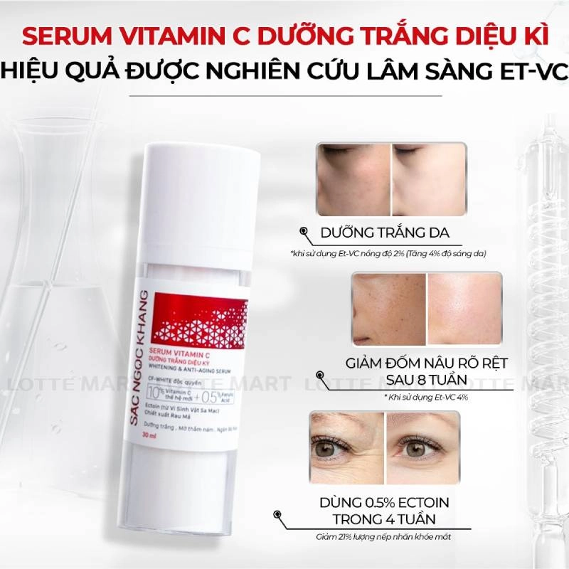 - Serum Sắc Ngọc Khang Vitamin C Trắng Da, Mờ Thâm Nám chứa công thức độc quyền giúp tạm biệt làn da không đều màu, thâm sạm, nám và tàn nhang.