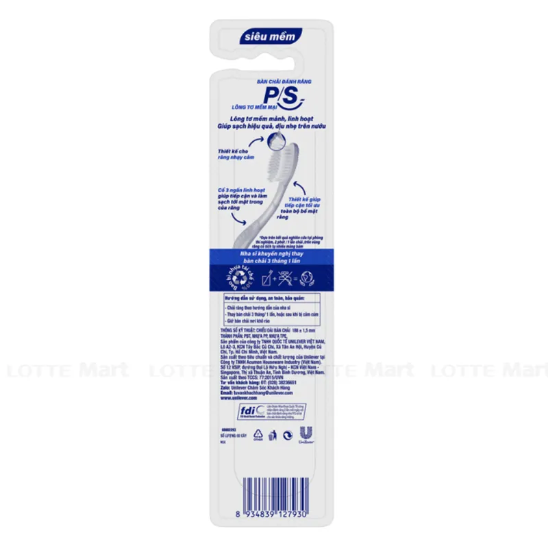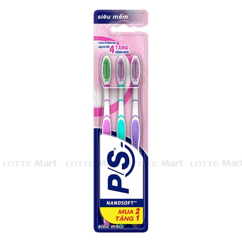 Bộ 3 Bàn Chải Đánh Răng P/S Lông Tơ Mềm Mại Cho Nướu với lớp bên trong gồm hàng triệu sợi chỉ tơ nha khoa mềm mại, đánh tan mọi mảng bám, chải sạch hơn 250% lông bàn chải thân thường, trám Canxi cho bề mặt răng.