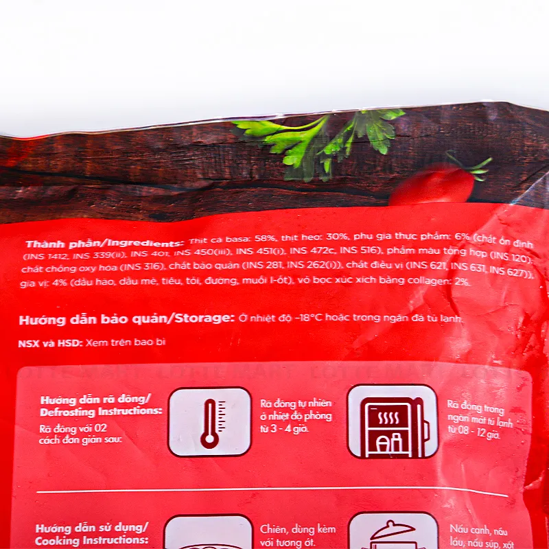 Hướng dẫn bảo quản: Ở nhiệt độ -18 độ C hoặc trong ngăn đá tủ lạnh.