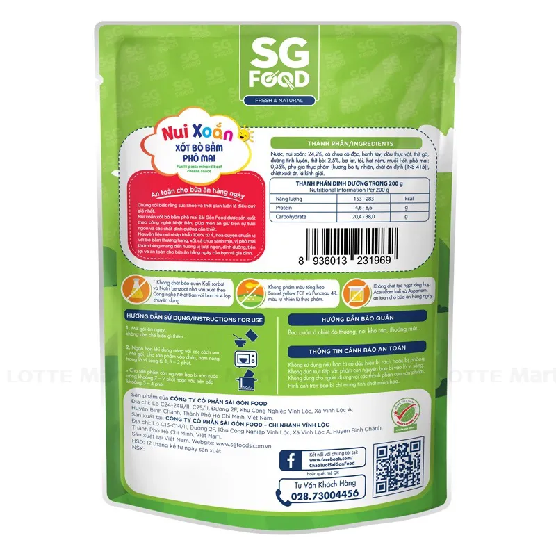 - Nui Xốt Bò Bằm Phô Mai Gói 200G là thức ăn bổ sung dành cho trẻ từ 1 tuổi trở lên và người lớn:Cung cấp đầy đủ dinh dưỡng: chất đạm, bột đường, chất xơ, khoáng chất cần thiết cho một bữa ăn.