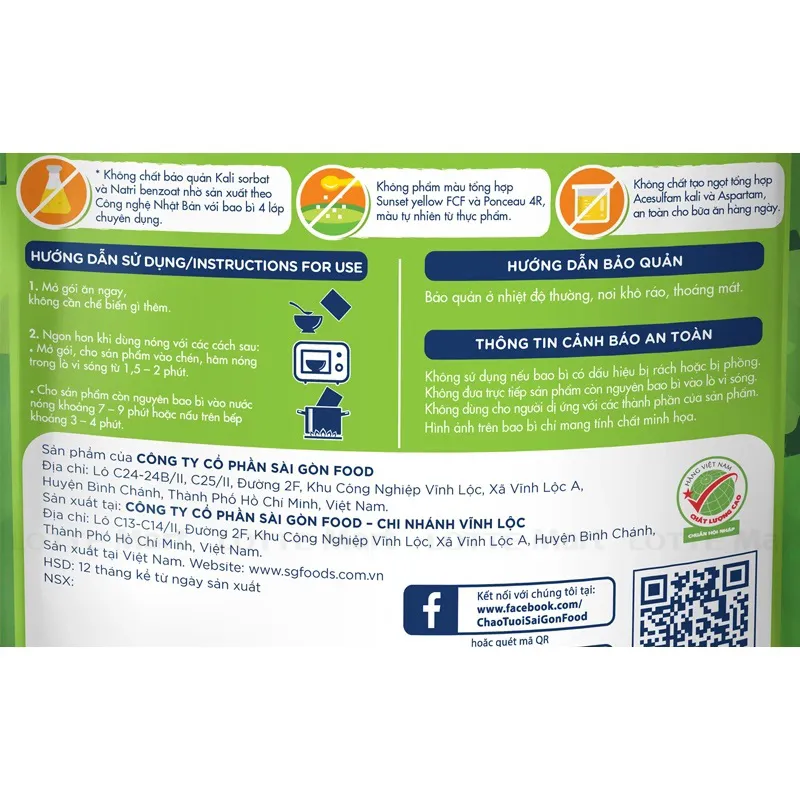 - Bao bì 4 lớp chuyên dụng, tiện lợi mở gói ăn ngay mà không cần chế biến gì thêm.