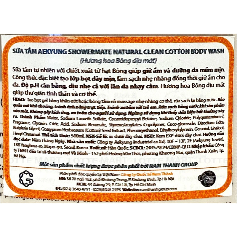 Sữa Tắm Shower Mate Natural Clean Cotton 500ml