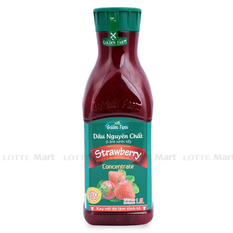 Sinh tố dâu Golden Farm là sản phẩm thơm ngon, hấp dẫn được làm từ trái chanh dây (50-60%), đường mía, siro bắp, nước, chất ổn định, chất tạo chua, chất bảo quản. Áp dụng dây chuyền công nghệ hiện đại được chứng nhận với tiêu chuẩn đảm bảo mang đến cho người tiêu dùng một sản phẩm chất lượng nhất. Sinh tố có dạng sệt, mang hương vị ngọt đậm đà và chua ngọt tự nhiên của trái dâu.