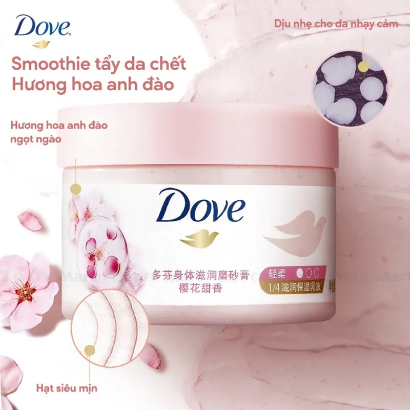 Smoothie Tẩy Da Chết Dove Hương Hoa Anh Đào đến từ thương hiệu Dove mới với hạt siêu mịn giúp nhẹ nhàng làm sạch tế bào chết trên da, cho bạn làn da sáng mịn ngay sau lần đầu sử dụng mà không bào mòn tổn thương da.