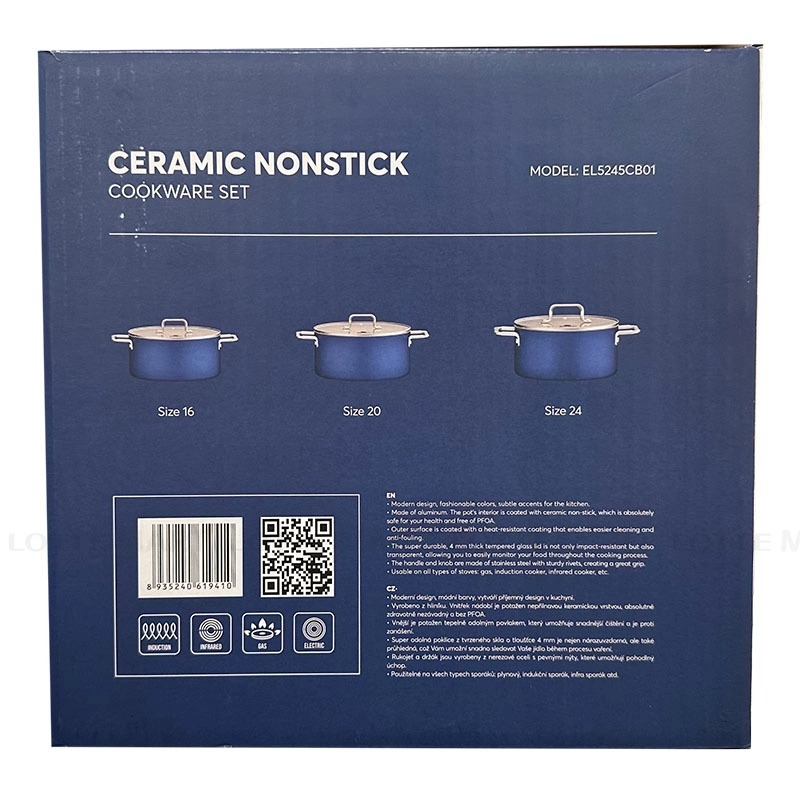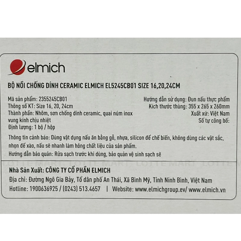Bộ 3 Nồi Chống Dính Đáy Từ Ceramic Elmich EL5245CB01 16cm - 20cm- 24cm