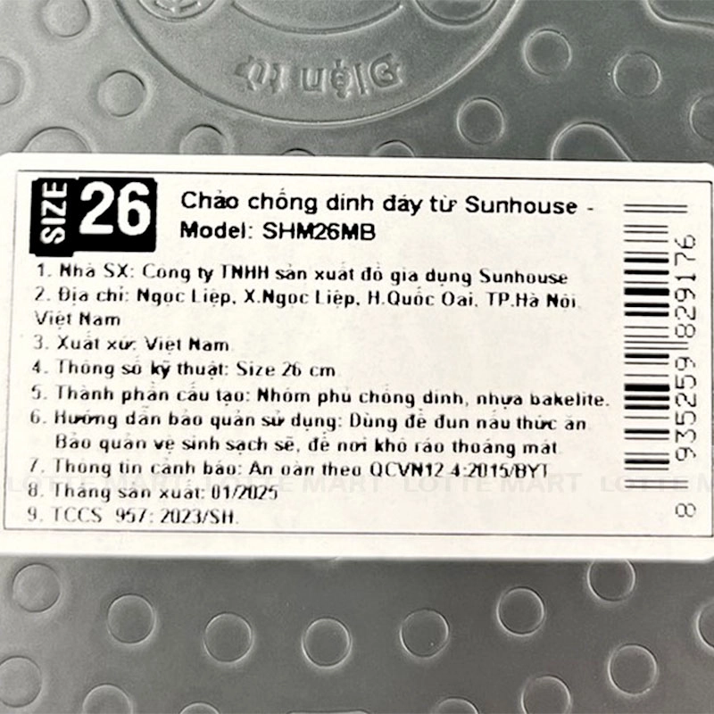 Chảo Chống Dính Đáy Từ Sunhouse SHM26MB Size 26cm