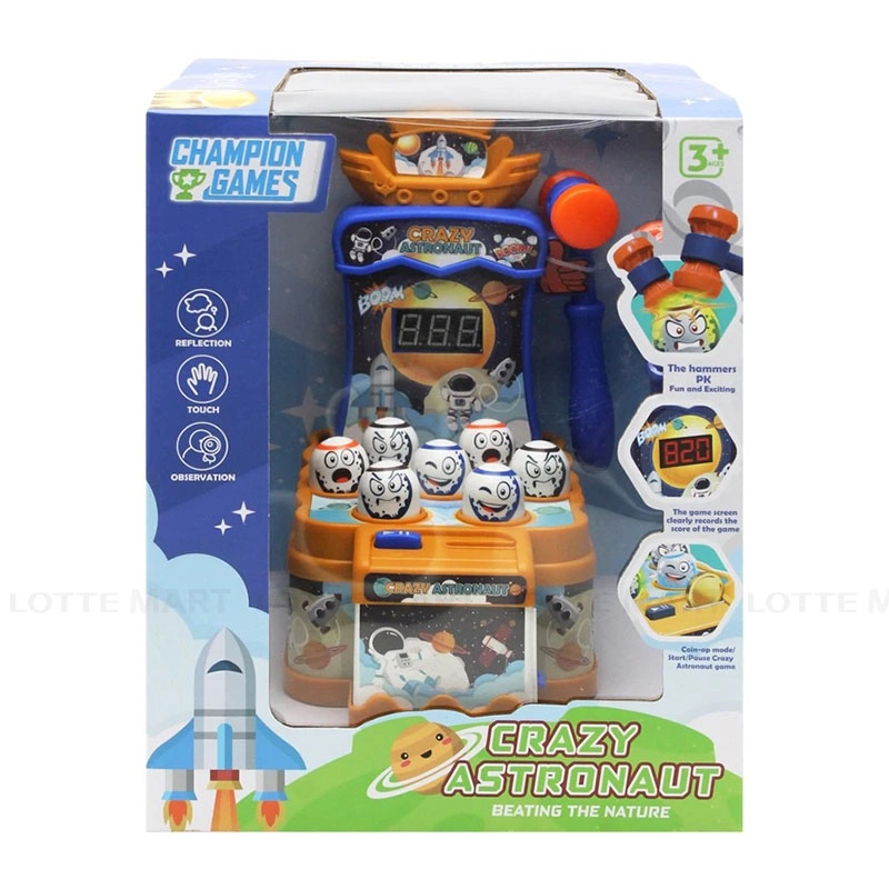 - Với cơ chế hoạt động tương tự máy thật, trẻ chỉ cần cho xu vào, khởi động và dùng búa đập các nhân vật khi chúng bật lên để ghi điểm, kết hợp cùng màn hình hiển thị giúp tăng thêm sự hứng thú và tính cạnh tranh khi chơi.