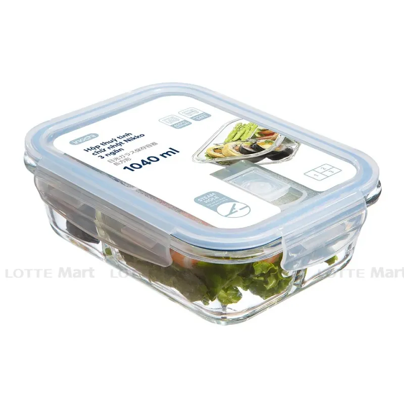 Hộp Thủy Tinh Chữ Nhật Nikko 3 Ngăn 1040ml