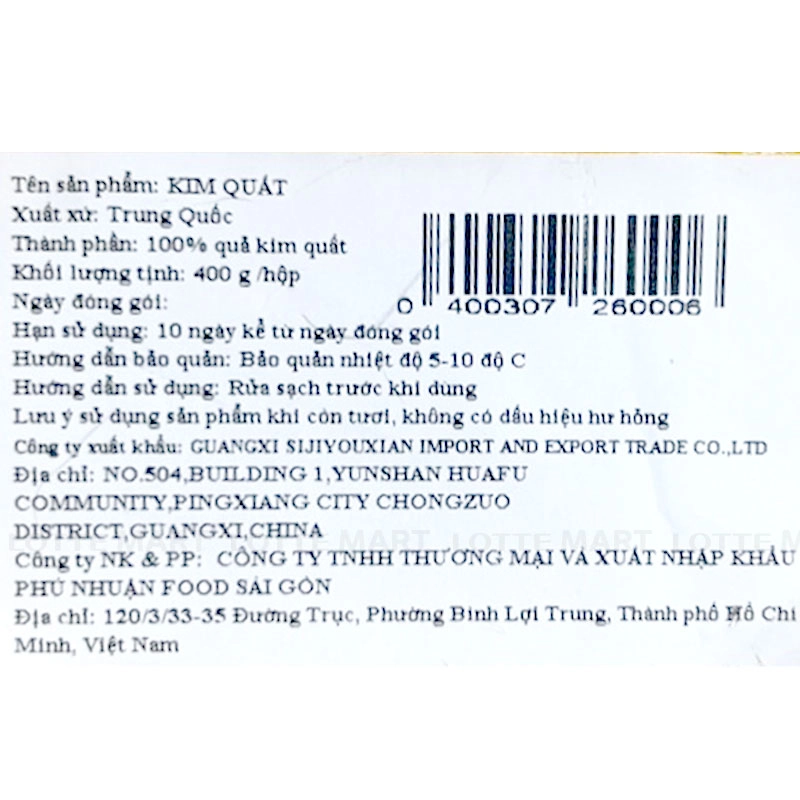 Kim Quất (Tắc Đường) Nhập Khẩu Hộp 400G