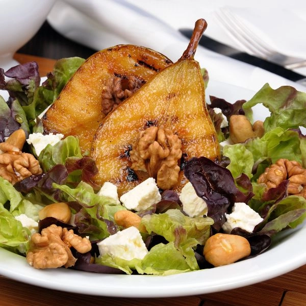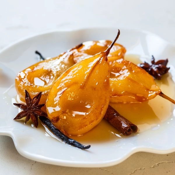 Lê nướng sốt caramel và hạt óc chó