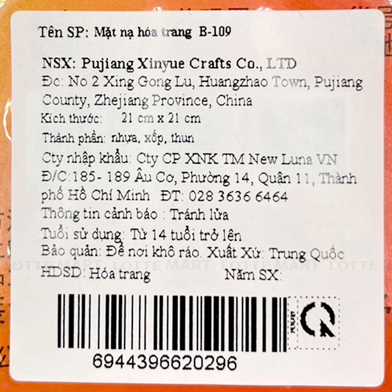 - Mặt Nạ Hóa Trang Mặt Quỷ B-109 là phụ kiện hoàn hảo để bạn hóa thân thành những nhân vật rùng rợn trong các bữa tiệc Halloween hoặc sự kiện hóa trang. Với thiết kế chi tiết và sắc nét, sản phẩm này sẽ giúp bạn trở thành tâm điểm của mọi bữa tiệc.