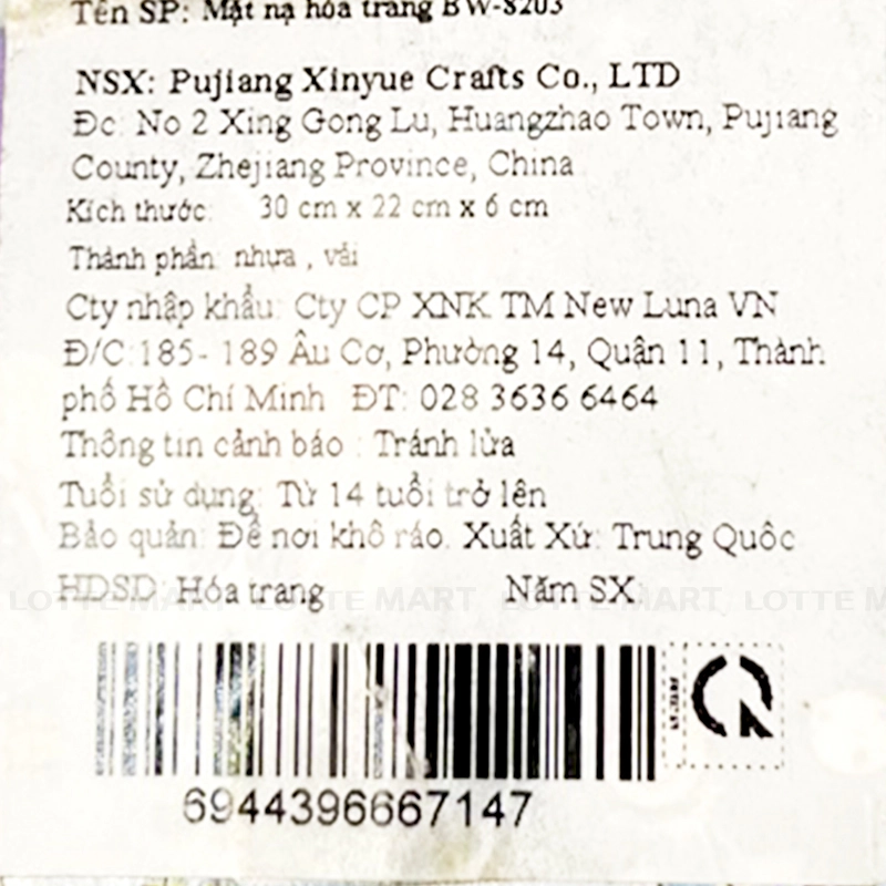 - Mặt Nạ Hóa Trang BW-8203 là lựa chọn hoàn hảo để biến hóa diện mạo của bạn trong mùa Halloween. Với thiết kế độc đáo, sản phẩm này giúp bạn dễ dàng tạo nên những hình ảnh ấn tượng và đáng nhớ.