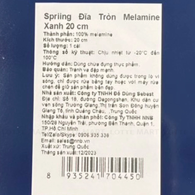 Dĩa Tròn Spriing Melamine Màu Xanh 20cm