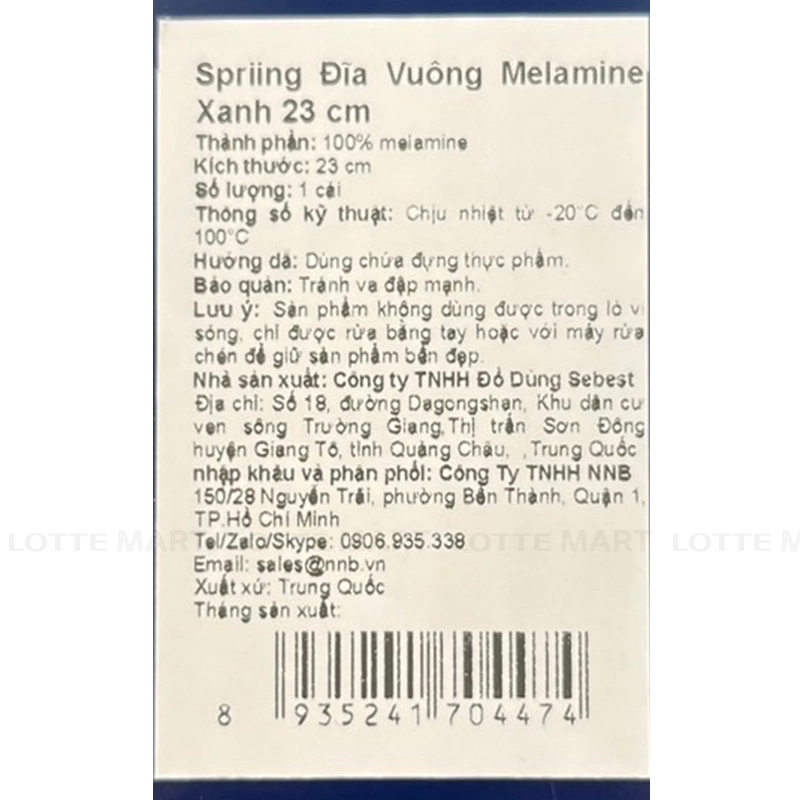 Dĩa Vuông Spriing Melamine Màu Xanh 23cm