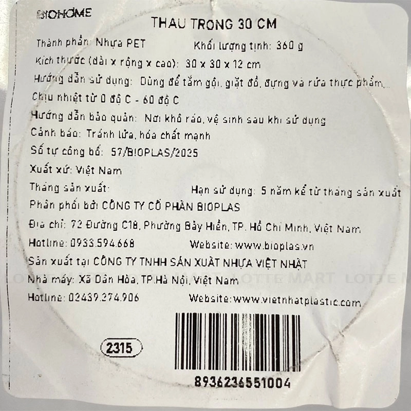 Thau Nhựa Trong Bioplas được làm từ chất liệu nhựa trong suốt như kính.