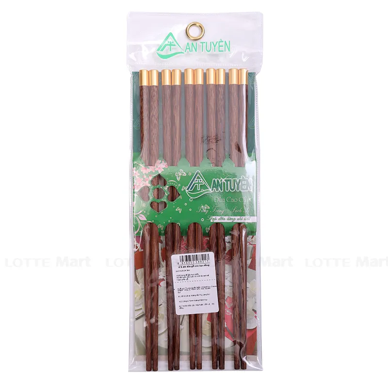 - Vỉ 5 Đôi Đũa Gỗ Tròn Bọc Đồng Dài 24.9cm được làm từ chất liệu gỗ tự nhiên, an toàn cho sức khỏe người sử dụng, sản phẩm được đánh bóng, chịu nhiệt cao và hạn chế tối đa nấm mốc vi khuẩn.