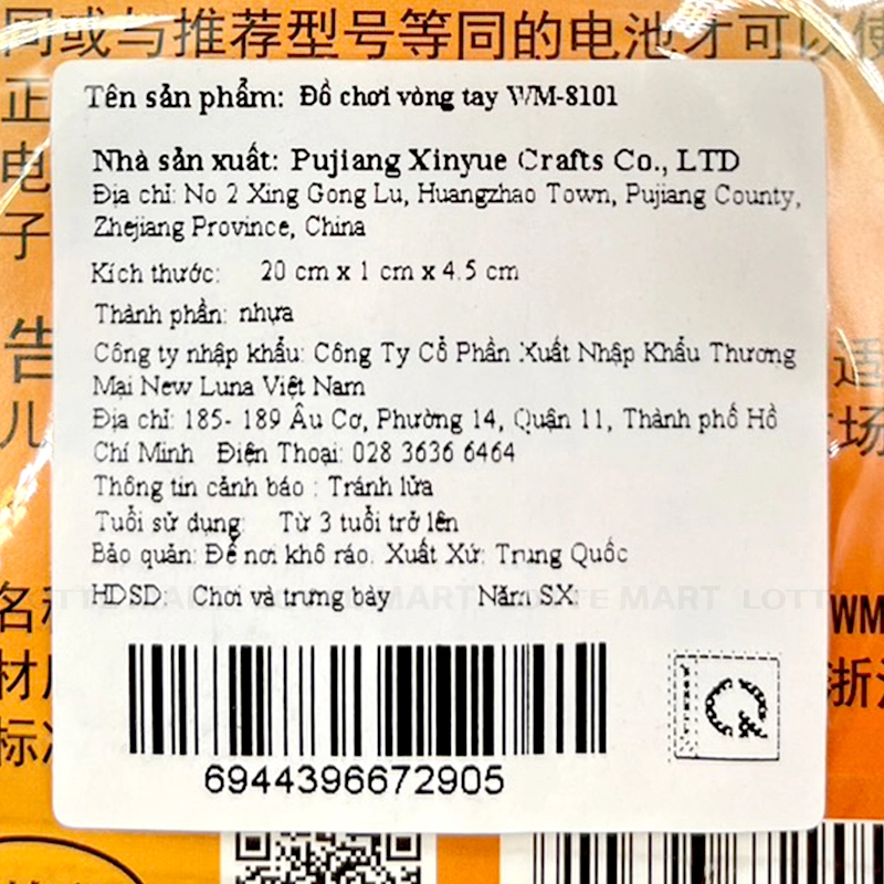 - Đồ Chơi Vòng Tay Họa Tiết Halloween WM-8101 là phụ kiện vui nhộn và thú vị để bạn thêm phần nổi bật trong các bữa tiệc Halloween hoặc sự kiện hóa trang. Với thiết kế độc đáo và màu sắc bắt mắt, sản phẩm này mang lại không khí lễ hội vui tươi.
