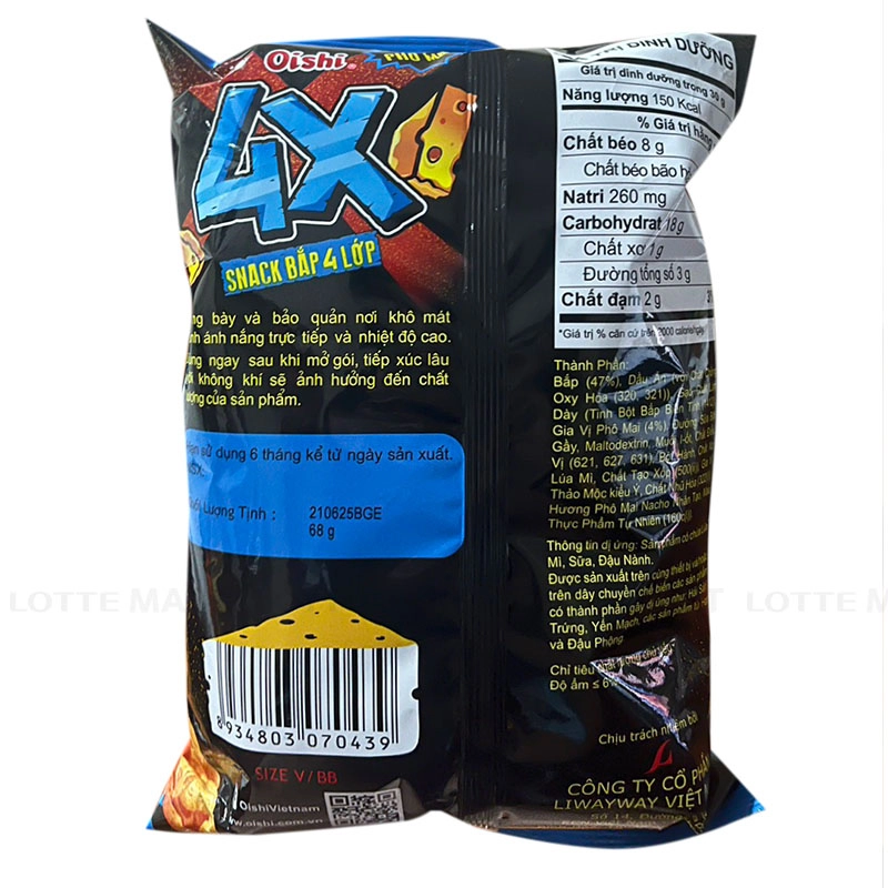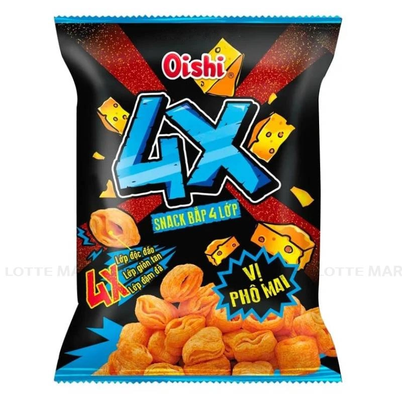Snack Bắp Oishi 4 Lớp Vị Phô Mai mang đến trải nghiệm giòn tan, độc đáo với thiết kế tận 4 lớp bánh, hấp dẫn ngay từ miếng đầu tiên.