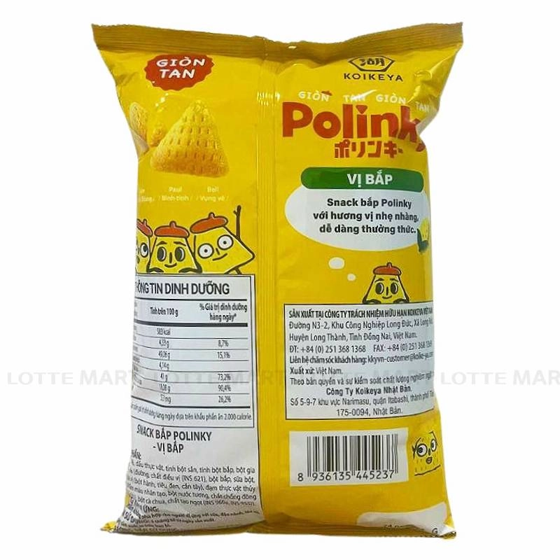 - Snack Polinky Vị Bắp với hương vị bắp thơm ngon, nhẹ nhàng dễ ăn, có thể trở thành món ăn vặt lý tưởng cho các thành viên trong gia đình.