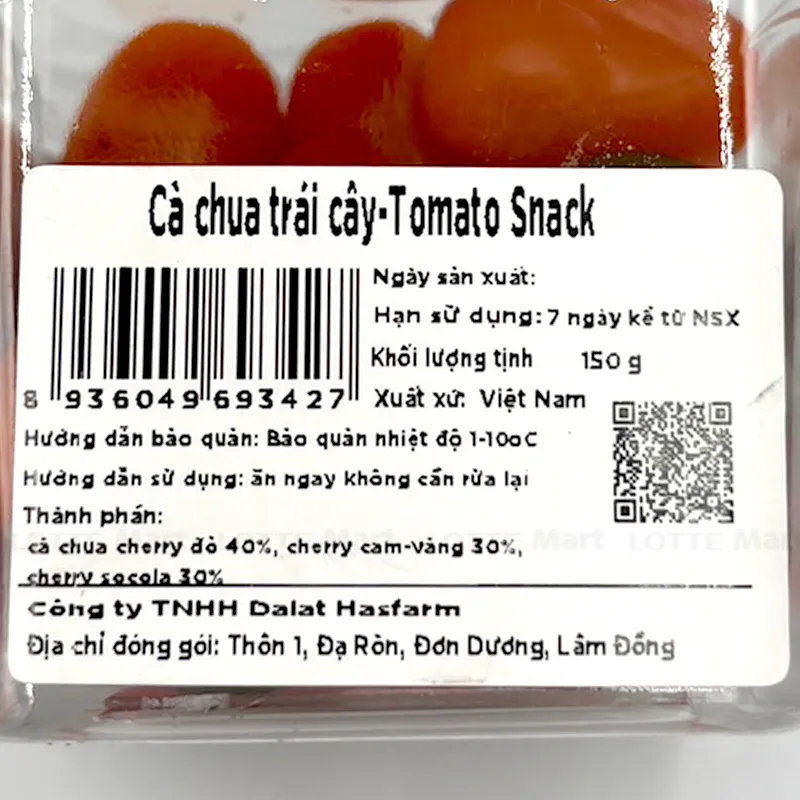 Thành phần: cà chua cherry đỏ 40%, cherry cam - vàng 30%, cherry socola 30%