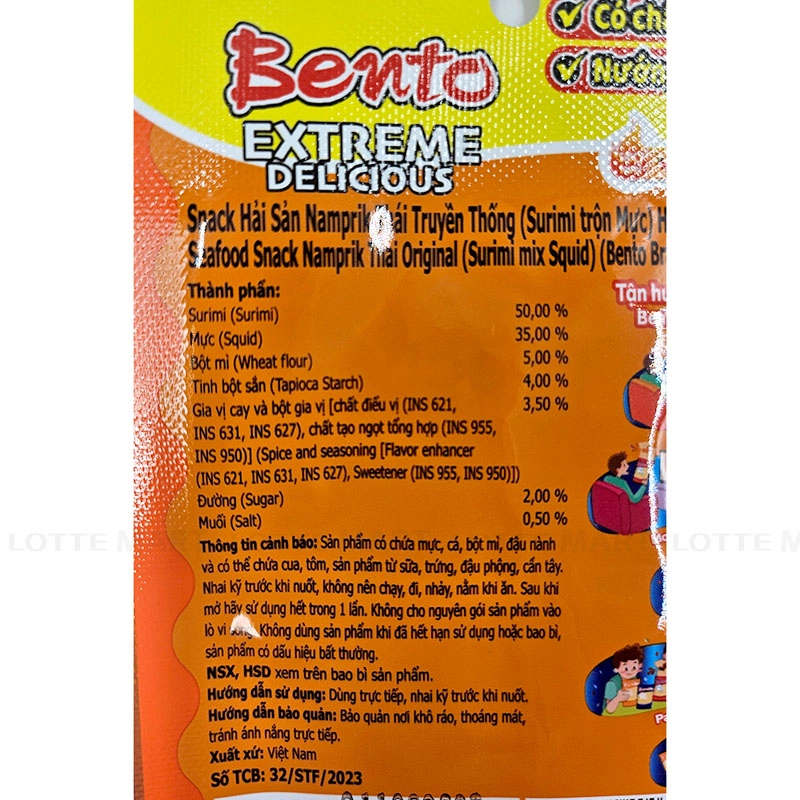 Mực Bento Vị Thái được chế biến theo công nghệ sấy tiên tiến, giữ nguyên hương vị thơm ngon của mực khi thành phẩm. Vị cay Thái và mùi thơm hấp dẫn của mực tẩm sẽ kích thích vị giác người dùng.