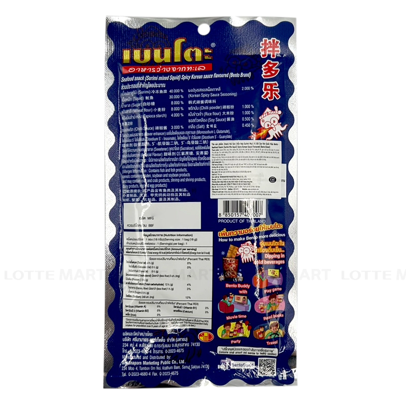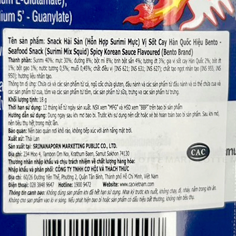 - Snack Mực Bento Vị Cay Gói 18G mang đến hương vị tẩm gia vị cay cay, cùng gia vị hoàn hảo lại còn đậm đà cho từng miếng mực giòn ngon, thơm khó cưỡng.