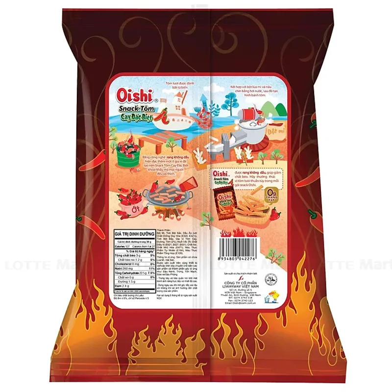 Snack Oishi Tôm Cay Đặc Biệt Gói 110g giòn ngon, thơm thơm vị tôm cay đặc biệt, bùng nổ, kích thích vị giác vô cùng. Snack tôm cay đặc biệt Oishi gói 39g hấp dẫn, phù hợp vừa xem phim, vừa nghe nhạc vừa nhâm nhi thưởng thức. bim bim Oishi tiện lợi, nhỏ gọn, dễ mang theo cho các buổi hoạt động ngoài trời.