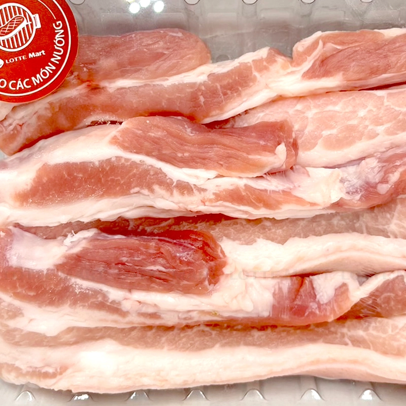 Ba rọi được cắt thành lát dày khoảng 1cm, thích hợp dùng cho các món nướng.